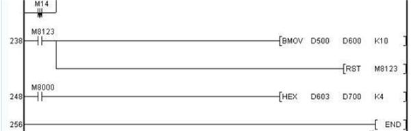 有關利用三菱變頻器協議與變頻器進行通訊的PLC程序如下: