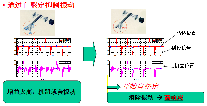 7) 伺服新增<一鍵式調整>功能,解決現場伺服增益調整難問題,三種模式,一鍵啟動,自動調整到需要效果;對機械共振消除,插補圓弧鋸齒消除,到位擺動問題輕易解決