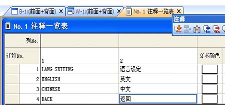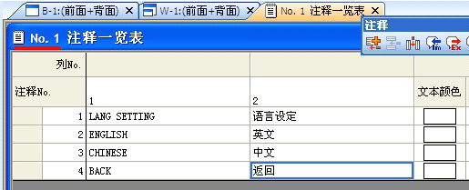 預(yù)覽列 NO:這里的預(yù)覽列為 1 時(shí),是預(yù)覽英文注釋?zhuān)粸?/span> 2 時(shí),是預(yù)覽中文注釋。注釋組 NO:因?yàn)橐婚_(kāi)始只建了一個(gè)注釋組,所以為 1。