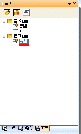 4、在畫(huà)面→窗口畫(huà)面中雙擊新建,進(jìn)行新建窗口畫(huà)面。