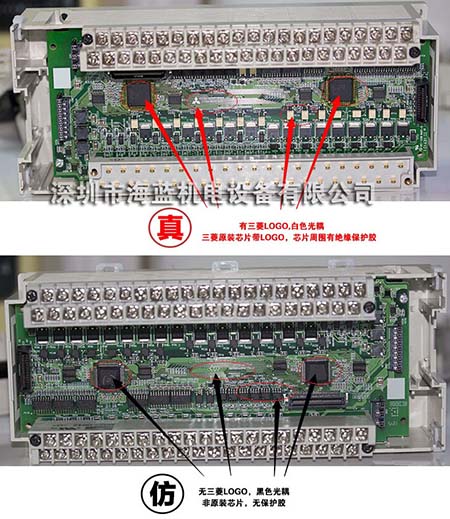 3、內部,真品每塊電路板上都有三菱Logo。仿品電路板上沒有三菱Logo。