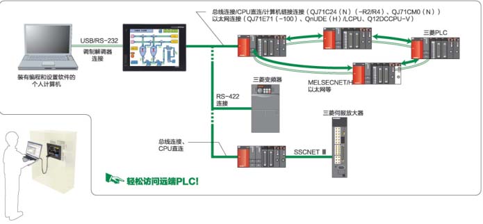回答:可以。三菱的觸摸屏 GOT1000 系列中的 GT11/15 系列都可以直接連接歐姆龍、神港技術、Chino、富士、山武等品牌的溫度調節器/指示調節計,可以直接連接三菱電變頻