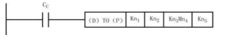 Kn3Mn4:源數據在PLC中的存儲地址。Kn3代表需要寫入的二進制位數,以4位(bit)為單位,如K4代表16位,允許輸入的值為K1~K8。Mn4代表源數據在三菱PLC中的存儲地址。源數據也可以是16位數據寄存器D(常用),此時就不需要前綴Kn3了。