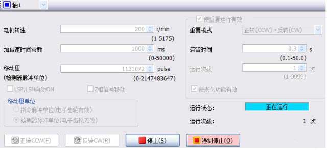 設(shè)置完成后,點(diǎn)擊“正轉(zhuǎn)”,使電機(jī)運(yùn)行。